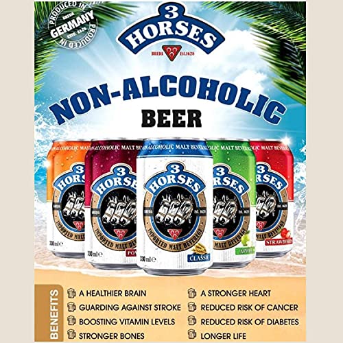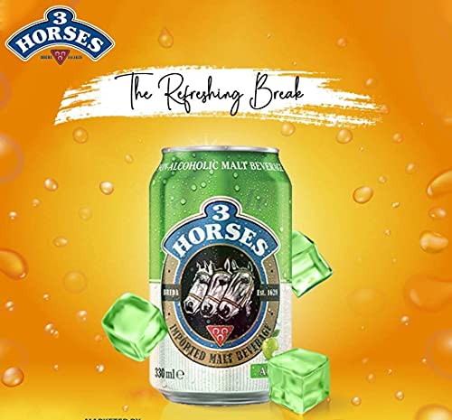 ABOUT 3 Horse Refreshing Malt Taste Non-Alcoholic Beverage Drink Beer Can, Pack of – 6 (330 ml Each can)