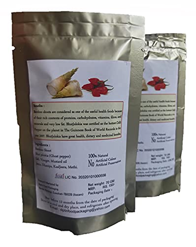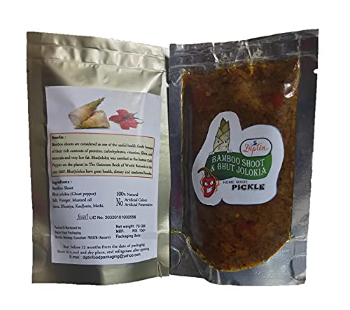 Bamboo shoots have immense potential of being used as important health food as they contain high proteins, amino acids, carbohydrates, many important minerals, and vitamins. King Chillies (Bhut Jolokia) are considered as one of the Hottest Chillies in the world. It has great health, dietary and medical benefits. It help in Curing Headaches, Migraines, Sinuses, etc. Handpicked King Chillies and bamboo shoots are used to manufacture this pickle. The taste and aura of this product will take you to mesmerizing ambiance to the land of rising sun (North East)