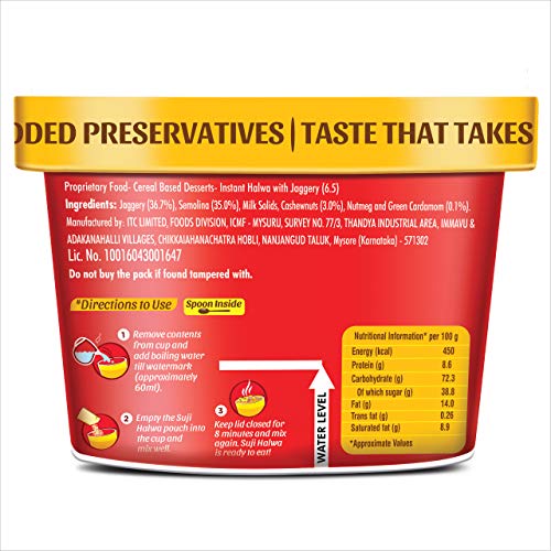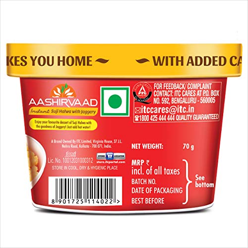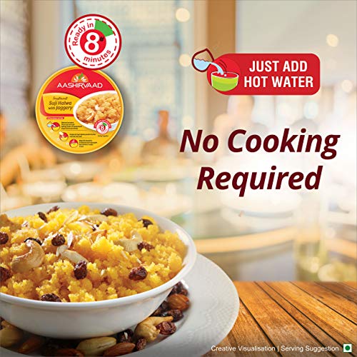 “Aashirvaad Instant Meals range is packed with the promise of a taste that takes you home. Convenient and easy, these ready-to-eat Instant Meals can be made in just a few minutes. Feeling nostalgic? Revive your sweet childhood memories with Aashirvaad Instant Suji Halwa with Jaggery. Add hot water, stir and your suji halwa will be ready in just 8 minutes! Conveniently packed in a cup, you can now relish suji halwa, anytime and anywhere. Semolina and jaggery cooked in ghee are flavoured with cashews, nutmeg and cardamom. Indulge guilt-free as the halwa is made with jaggery and not refined sugar. “