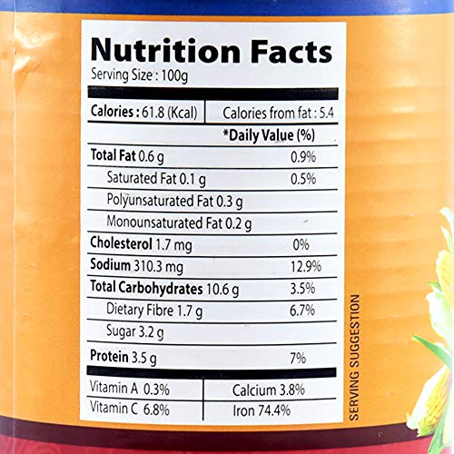 Ingredients – Corns Kernel, Sugar, Water`, Salt.