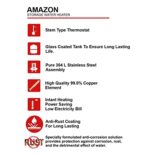 Brand : Activa (A Name To Trust) Model Name : Amazon (ivory) 15 Ltr. glassline series About Product : Type:STORAGE Capacity: 15 Litres Wattage: 2000 Watts Pressure: 8 Bars BEE Rating: 5 Star Inner Tank Material: Blue Glass Lined Tank- 2X rust Resistance;Rated Pressure 0.70 MPA.SUITABLE FOR HIGH RISE BUILDING. its inner tank has been made of thick-gauge steel using single-line welding technology with Superior Glass-Lined Coating that safeguards it from corrosion and adverse effects of hard water; thus, ensures the longevity of your water heater. Outer Body Material: Activa geysers has been made of best quality mild steel with anti-corrosive 7 processed powder coating making it last long, even in a highly humid bathroom environment. Heating Element: first in class Glass-Coated double weld Heating Element to prevent scale formation and extend the life of heating element. Highest Saving: BEE 5-star rated with Advanced heat resistant Technology for Power Savings. Perfect if you want to go green. Quality check: 5 safety function and 15 Quality check by team of professionals to ensure best product for you. Extra safety: Double Protection with Thermal Cut-Out and Multi-function Safety Valve. Warranty: 5 years on inner tank, 1 years comprehensive with all parts. Included in the box: 1 Storage Water Heater, User Manual with warranty details. NOTE: Self installation. Customers need to arrange installation on their own and product will be repaired in our service center.