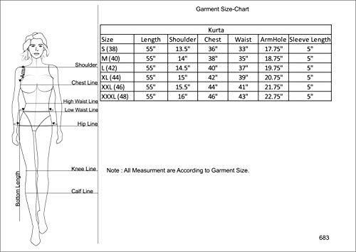 · All measurement shown is of the garment. Customers are requested to choose a garment size that is two inches more than your body measurement for the ease of wearing and taking off the garment.