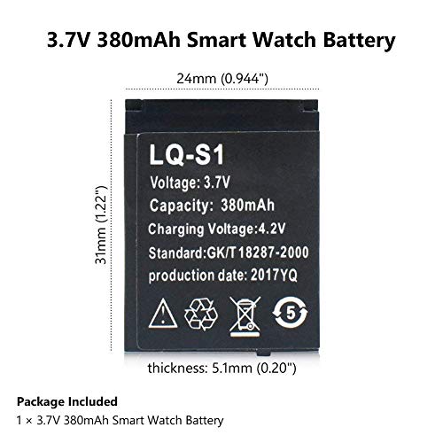 380 mAh SMARTWATCH REPLACEMENT BATTERY, Battery Size 3 x 2.5 x 0.5Cm, Suitable Only for DZ09 Model Smartwatch. Compatible with DZ09 A1 GT08 X6 V8 Z60 SW007 Wrist Smartwatch. Please Check the correct model and size Before you purchase.