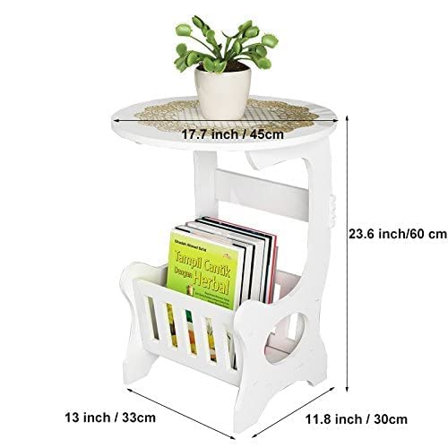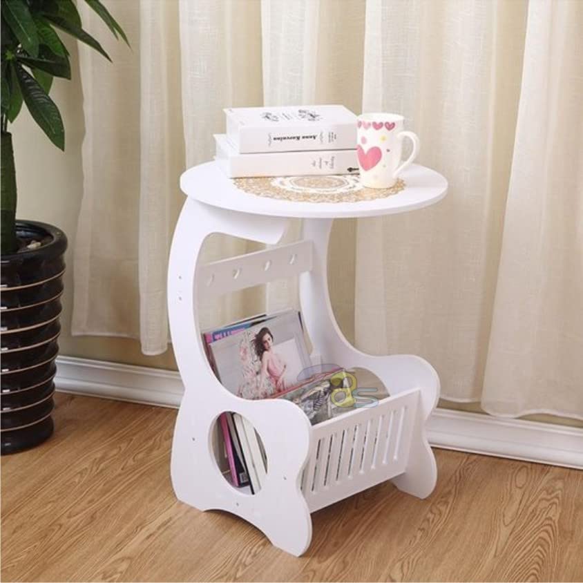 Amazing Shoppee Small Round Bed Side Table Round Coffee Tea Table Home Living Room Storage Magezine and Book Rack (White)
