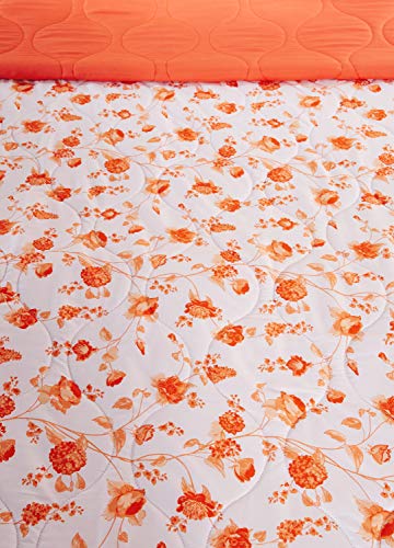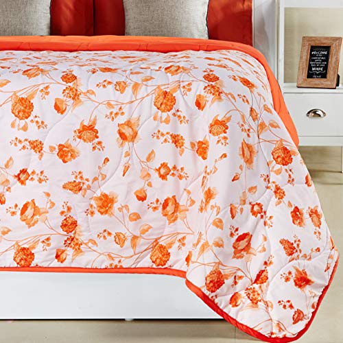 Amazon Brand – SolimoVictoria Microfibre Printed Quilt Blanket/Comforter, Double, 120 GSM, Orange, reversible
