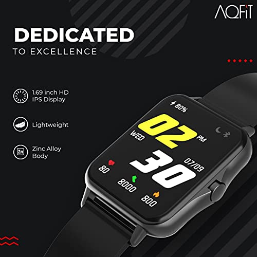 AQFIT W12 Smartwatch IP68 Water Resistant | 1.69” Full Touch Screen Display | Up to 7 Days of Battery Life | Integrated Health Check | 5.0 Bluetooth | for Men and Women(Black)