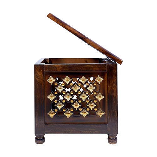 Included Components:Art window Beautiful Antique Wooden Stool with Storage for Living Room and Bedroom Furniture (Brown, 12 Inch)