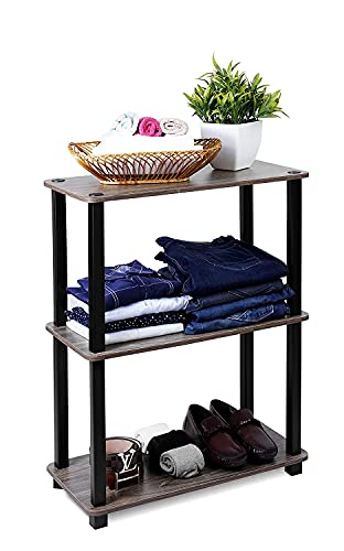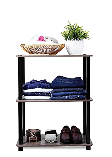 Easy no hassle no tools 5-minutes assembly even a kid can accomplish. Sturdy on flat surface ; 3 shelves for ample storage space