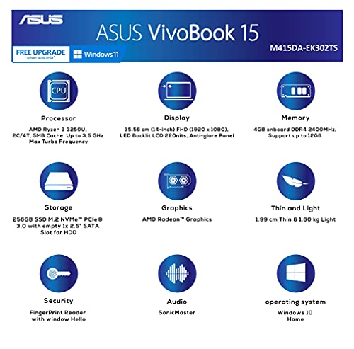 ASUS VivoBook 14 (2020) AMD Ryzen 3 3250U 35.56 cm (14-inch) FHD Thin and Light Laptop (4GB/256GB NVMe SSD/Integrated Graphics/Windows 10/MS Office 2019/Transparent Silver/1.6 kg), M415DA-EK302TS