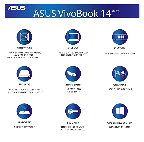 Memory & Storage: 8GB DDR4 3200MHz Dual Channel RAM, Upgradeable up to 20GB using 1x SO-DIMM Slot with, | Storage: 1TB HDD 2.5-inch SATA 5400RPM + 256GB M.2 NVMe PCIe SSD