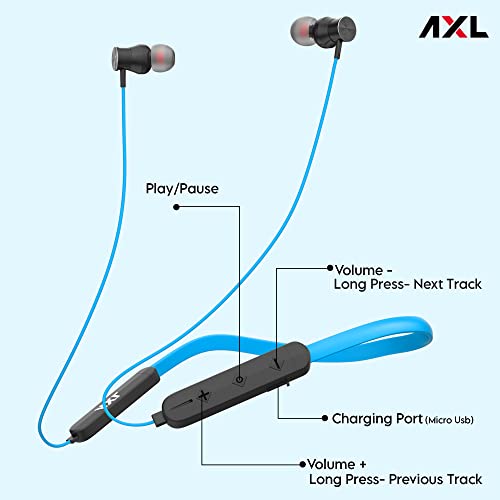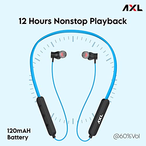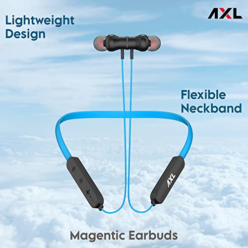 AXL NB06 Bluetooth 5.0 In Ear Wireless Headphones with 12 Hours Playback, IPX4 Splash Resistant Magnetic Earbuds, Bass Boost Drivers, HD Stereo Sound and Ergonomic Light Weight Design (Blue)