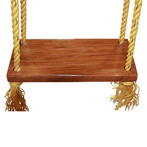AZUKA® Wooden Swing for Indoor, Outdoor, Garden and Balcony | Natural Solid Wood with Jute Rope |