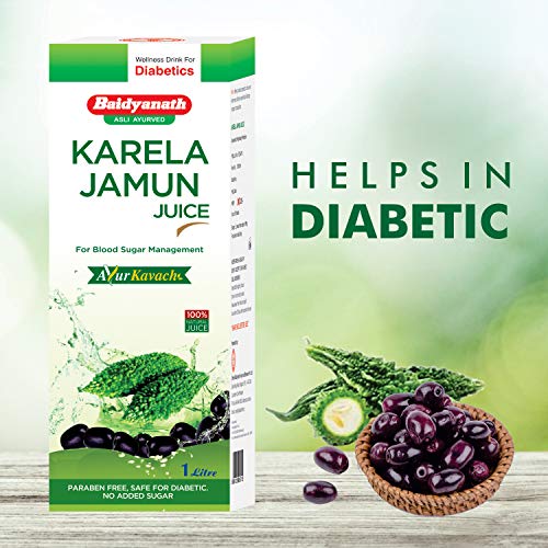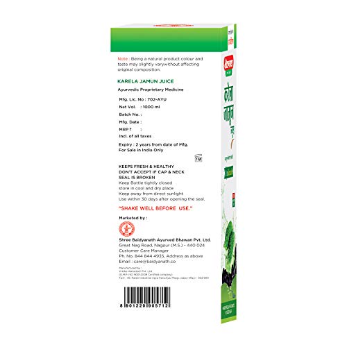 Baidyanath Karela Jamun Juice is an effective natural remedy for high blood sugar.It also acts as a remedy for dysentery and diarrhea. Together, they not only control blood sugar but also aid in digestion. Baidyanath Karela Jamun Juice purifies blood and acts as an antioxidant. Baidyanath Karela Jamun Juice helps to purifies blood and fights infections. It is very effective in skin diseases. It helps to reduce acne and pimples on face. It is a good remedy for cough & cold.