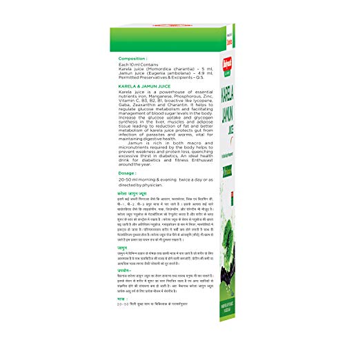 Dosage: Take 20-50 ml of Baidynath karela jamun juice mix in 1 glass of water