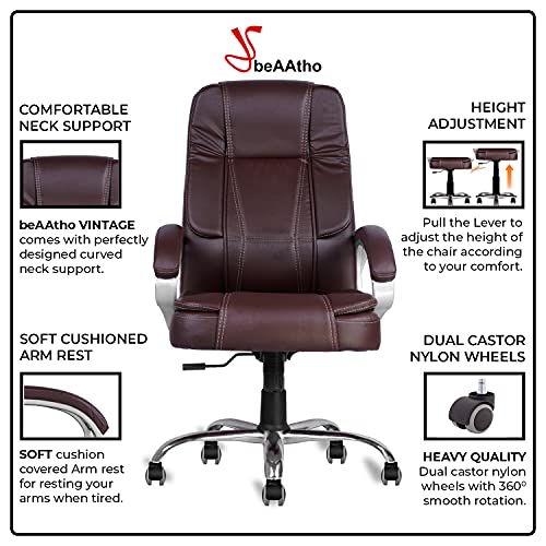 *ERGONOMICALLY ADJUSTBALE* – beAAtho VINTAGE is designed to give you ultimate comfort by Providing you ergonomic designed back, leatherette upholstery, extra padding for soft cushion Locking Tilt Mechanism, Adjustable height and Smooth 360 degree Swivel.