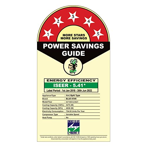 Energy Rating: 5 Star. Annual Energy Consumption: 754.85 units. ISEER Value: 5.41