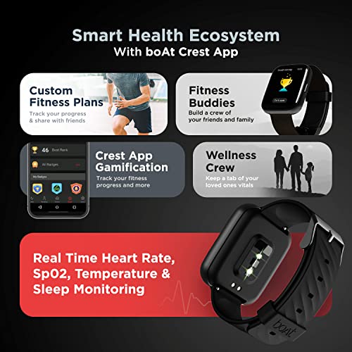 HR & SpO2- The watch comes with a 24×7 heart rate & SpO2 monitor (blood oxygen levels,) wellness crew and fitness buddies features to keep a tab on your overall health.