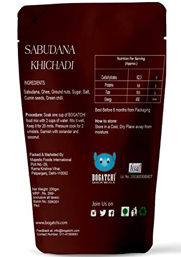 BOGATCHI Quick Meals – Ready to Cook Authentic SABUDANA KHICHDI – 200 g , Ready to Eat Meal, Vrat Food, 100% Natural Ingredients, No Preservatives, No Artificial Colours & Flavours