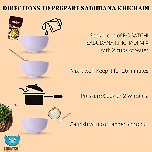 BOGATCHI Ready to Cook SABUDANA KHICHDI is a QUICK MEAL for You, Ready to Cook Meal, Serves 2 in 1 Pack, Easy to make Delicious and Tasty Meal, Just in 10 Minutes