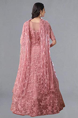 Bollyclues Women’s Mono Net Embroidered Pink Semi Stitch Gown(BC-Chain_Semi Stitch)