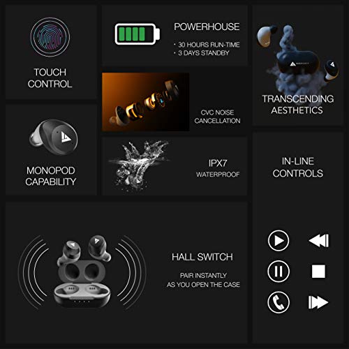 Offers playback time of up to 7.5 hours for every charge. Carrying case can give 4 additional charges to the earbuds making total play-time of up to 30 Hours.