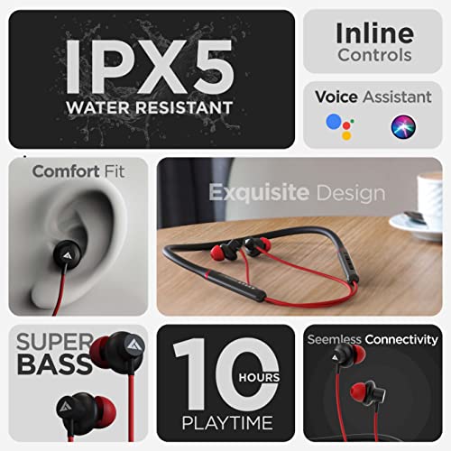 Boult Audio ProBass X1-Air in-Ear Earphones with Fast Charging,10H Battery Life & Extra Bass, in-Built Mic, IPX5 Water Resistant Neckband(Red)