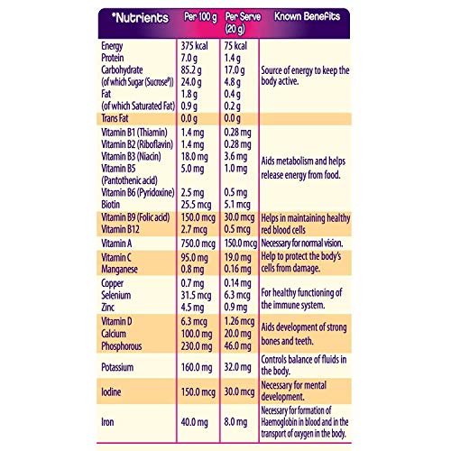 Cadbury Bournvita is a nutrition brand with a 70 year legacy in India. Cadbury Bournvita is a health food drink with inner strength formula which has nutrients that support – Immune system(8 immunity nutrients), Strong bones (Vitamin D, Phosphorous), Strong muscles (Protein, Vitamin D) and Active Brain(Iron, Iodine, Vitamin B2, Vitamin B12). Recommended 2 serves per day as part of a balanced diet and a healthy lifestyle.