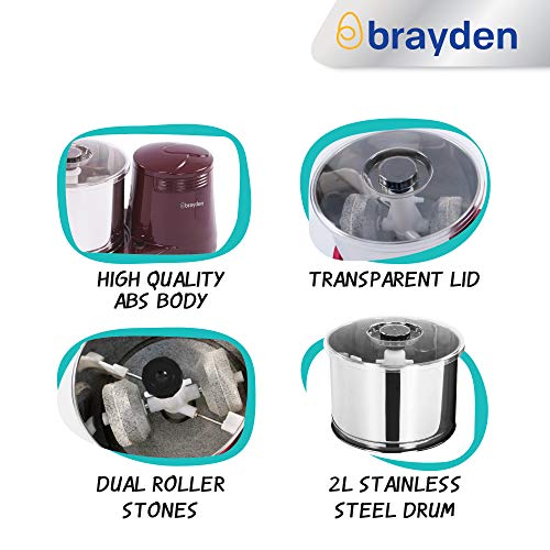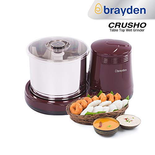 POWERFUL MOTOR Sturdy high torque heavy duty copper motor with 1440 rpm efficiently grinds batter for crispy dosas, fluffy idlis, crunchy vadas and also knead dough for soft Chapatis or Rotis with no body heat. Experience uniform grinding pressure with Brayden Crusho table top grinder.