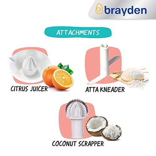 ADD MORE TO THE LIST Count not one but three additional attachments to your list. Enjoy atta kneader, coconut scrapper, and citrus juicer exclusively to make your two litre wet grinder a multifunctional unit. Perfect grind companion!