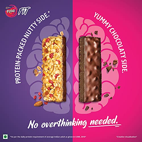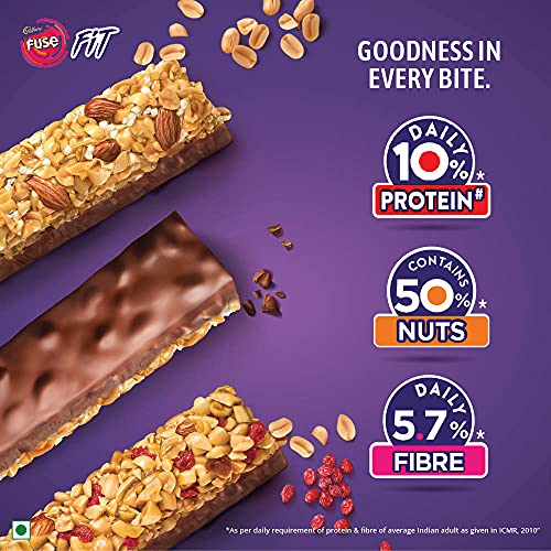 A protein packed tasty snack bar which has goodness of crunchy peanuts, almonds, cranberries and raisins combined with delicious Cadbury milk chocolate. A mouth-watering nutribar that gives you 10% of your daily recommended protein intake. A must have on-the-go snack full of goodness. Grab a fuse fit td to satiate yourself during moments of hunger.