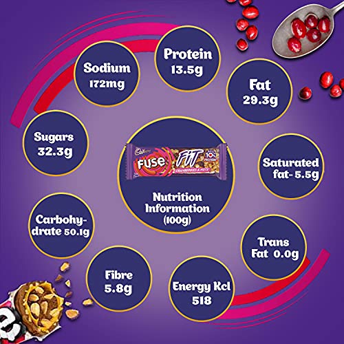 Cadbury fuse fit cranberries & nuts contains 10% of your daily dose of protein