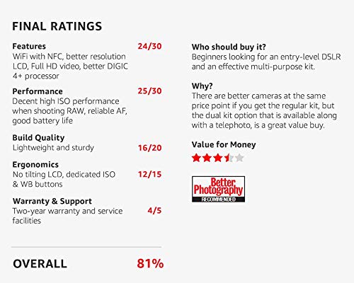 Lens Mount: EF-S mount compatible with all EF and EF-S lenses (crop-sensor mount versatile and compact, especially when used with EF-S lenses)