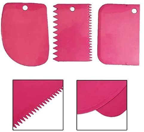 3 dough scrapper along with silicone spatula and silicone brush for applying oil