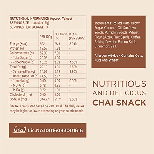 Enjoy Guilt Free: You can snack around anytime without feeling guilt. It contains No Maida. Our cookies are very rich in fibre. Oats help you with weight loss. Seeds are very rich with protein & dietary fibre. It delivers a unique & satisfying experience in every bite.