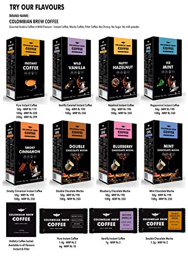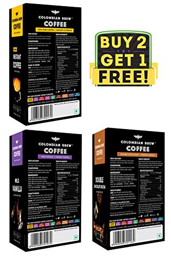 This Is An Elegant Pack Of Pure Instant 50G, Vanilla Instant 50G, Double Chocolate Mocha 50G. Made With Handpicked 100% Pure Coffee Beans And Cocoa Beans. Colombian Brew Is Inspired By Francisco Romero, A Priest In Mid-16Th Century Colombia That Started Its Coffee Revolution. Colombian Brew Coffee Is Sourced From Best Coffee Bean Plantations In The World.