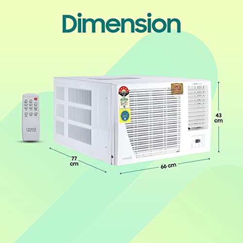 Included in the box: AC Unit (76 (w) x 82 (d) x 56 (h)) in CM, Remote Control, User Manual, Remote Control Battery