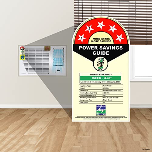 Energy Rating: 5 Star, ISEER Value: 3.33; Modes: Cool, Dry & Fan; Voltage – 230 V AC; Frequency – 50 Hz; Cooling Power – 1470