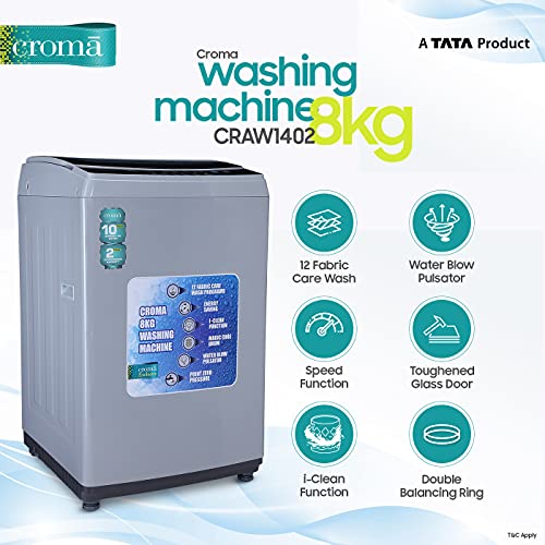 Croma 8 Kg 5 Star Fully Automatic Top Load Washing Machine (CRAW1402, Grey)