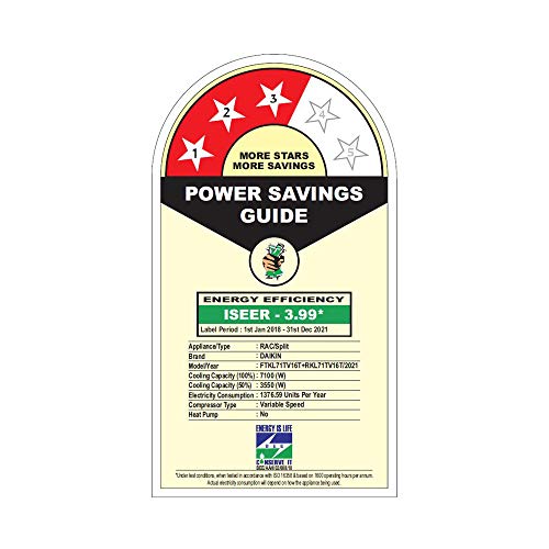 Energy Rating: 3 Star: , Annual Energy Consumption (as per energy label): 1377 units, ISEER Value: 3.99