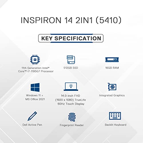 i7-1195G7 | 16GB DDR4 | 512GB SSD | Win 11 + Office H&S 2021 | INTEGRATED | 14.0″ FHD WVA Truelife Touch 60Hz Narrow Border, Dell Active Pen | Backlit Keyboard + Fingerprint Reader | 1 Year Onsite Hardware Service | Platinum Silver