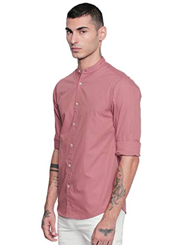 This Casual Solid shirt has a Mandarin / Chinese collar, full button Placket, Long Sleeves, and a curved hemline