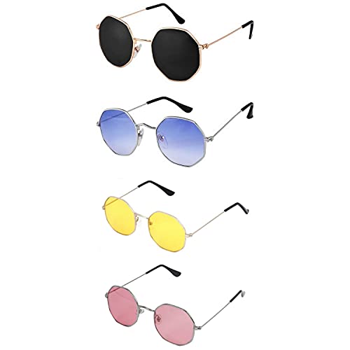 Dervin Octagonal Sunglasses/Frame For Men & Women (Multicolor) – Combo of 4About Dervin Sunglasses Dervin is committed to provide high quality fashionable and trendy shades or sunglasses. All Dervin sunglasses are made using top notch materials. Dervin unisex sunglasses are ideal for getting a charge out of the daylight, travelling, driving, fishing or shopping. Show your unique and top of the line i.e high-end taste with these mens/womens sunglasses. What’s more, these shades for men/women are light weighted to enable you long time wearing without fatigue.Product features: Easy to clean. Lightweight and durable. Reduce reflections and glare. Reduce eyestrain, no tired eyes after a full day in the sun. Improve contrast and visual clarity, to provide you a clear vision. Protect your eyes against harmful UVA/UVB & UVC rays, minimizing damage to your eyesight in the long run.What You Get: Sunglasses * 4 Sunglasses Pouch * 1 Cleaning Soft Cloth * 1Tips:1. To avoid damage, never clean your sunglasses with paper towels or clothing, and also avoid using household detergents or soaps. While a few mild soaps don’t harm lenses, today’s extra strength soaps are powerful enough to slowly disintegrate lens coatings.2. We are responsible for all our products, and would love to solve any quality or other problems at any time. If you have any problem, please feel free to contact us at any time. You have no risk to try and we will provide you the best service!