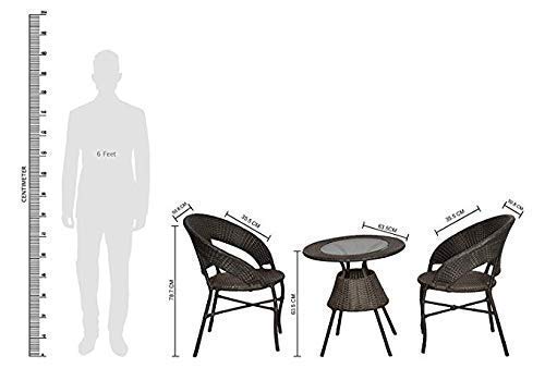 It is a genuine high quality Balcony Furniture product. Our Balcony Dining Set is manufactured by high skilled talented designers, high quality uv resistant durable materials used to manufacture this piece of Balcony Furniture. Highly Durable and resistance to any kind of weather conditions give it a unique proposition over other product available in the market. The Wicker is manufactured with HDPE (High Density Polymer) material which is of high quality and comes with UV protection which protects the furniture even in intense sun heat. This dining set primary material is made of Milde Steel frame of high durability Frame painted with Powder coated Paint for smooth finish which helps avoid corrosion Heavy duty build quality to tolerate maximum seating weight (130KG) UV protected wicker weaving, resistant to Sun heat and Rain, 100% washable and waterproof Package includes 4 chairs and 1 table set with Glass Top