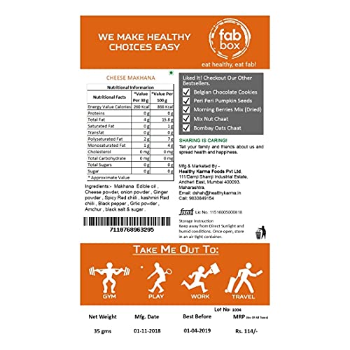 Fab box Roasted Makhana and Foxnut Snack, 35 Grams (Pack of 1) | Cheese Flavour | Protein and Fiber Rich Superfood | Gluten-Free Protein Snack, Healthy Evening Snacks for Kids and Adults