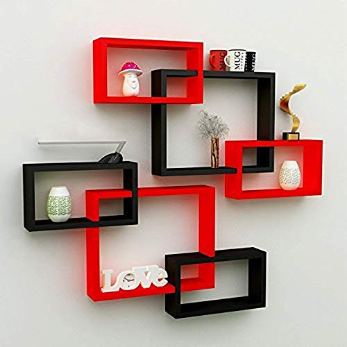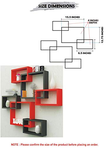 PACKAGE – Set of 6 intersecting wall shelves with dimensions Large Box Length (40 cm), Width (10 cm), Height (33 cm) Small Boxes Length: (28 cm), Width (10 cm), Height (17 cm)