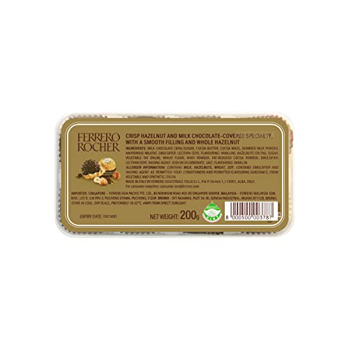 Ferrero rocher offers a unique taste experience of contrasting layers: a whole crunchy hazelnut in the heart, a delicious creamy hazelnut filling, a crisp wafer shell covered with chocolate and gently roasted pieces. And thanks to its inimitable golden wrapper ferrero rocher is even more unique and special.