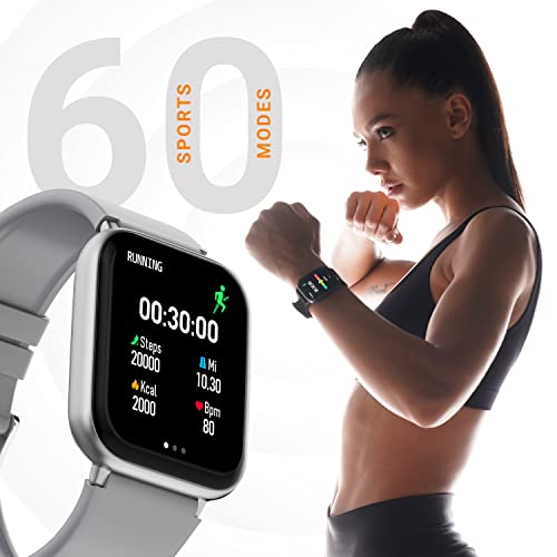 【60 Sports Modes】- This smartwatch consists of 60 sports mode to track.【IP68 Water Resistant】- This watch can withstand dust, sand and even droplets of water during rain & is sweat resistant 【Voice Assistant】- Command your mobile phone with your smartwatch