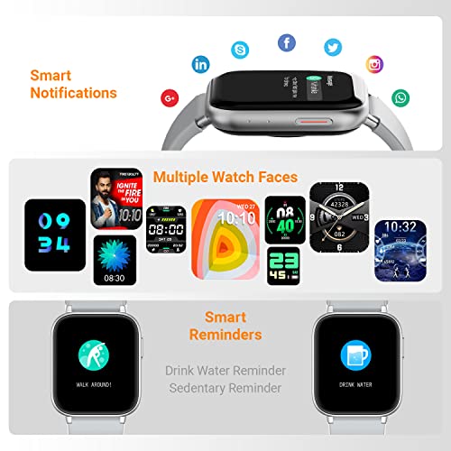 【SPo2 Monitoring】- Monitor your blood oxygen levels any time anywhere. 【360 Health Ecosystem】- With this watch track your heart rate, calorie, step count and multiple sports modes with easy touch【Female Reminders】- This smartwatch also maintains and reminds menstrual cycles