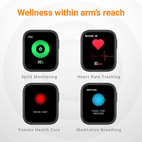 【SPo2 Monitoring】- Monitor your blood oxygen levels any time anywhere. 【360 Health Ecosystem】- With this watch track your heart rate, calorie, step count and multiple sports modes with easy touch【Female Reminders】- This smartwatch also maintains and reminds menstrual cycles