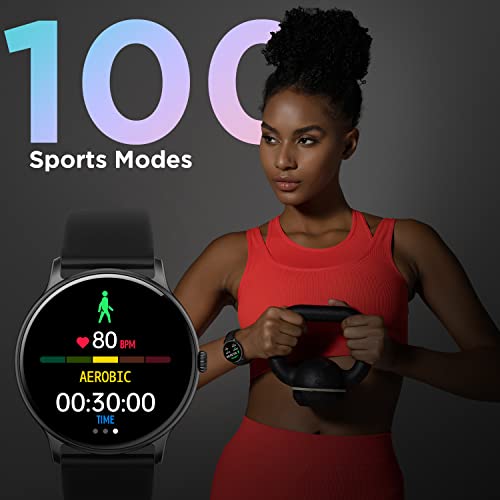 【Smart Health】- With the latest HRS3300 technology track your heart rate anytime of the day or even while you perform some activity. The optical sensors assure results so accurate. Monitor your blood oxygen levels to stay fit and healthy;【Smartphone Notifications】- Get all your mobile phone notifications on this 1.3″ Round Display Full touch smartwatch and never be late for a meeting, party or date.